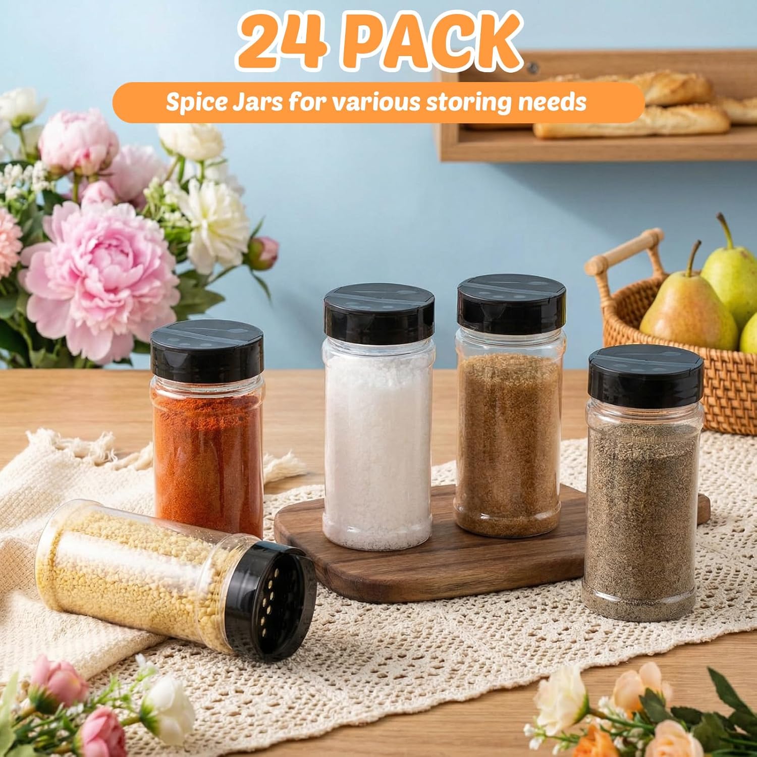 - Seasoning Containers in Sufficient Quantity: you will receive 24 pieces of plastic spice jars with shaker lids. enough quantity and capacity for you to use or place in daily life. traveling. camping. picnics. BBQ or other activities. you can also share some of them with your friends or family members